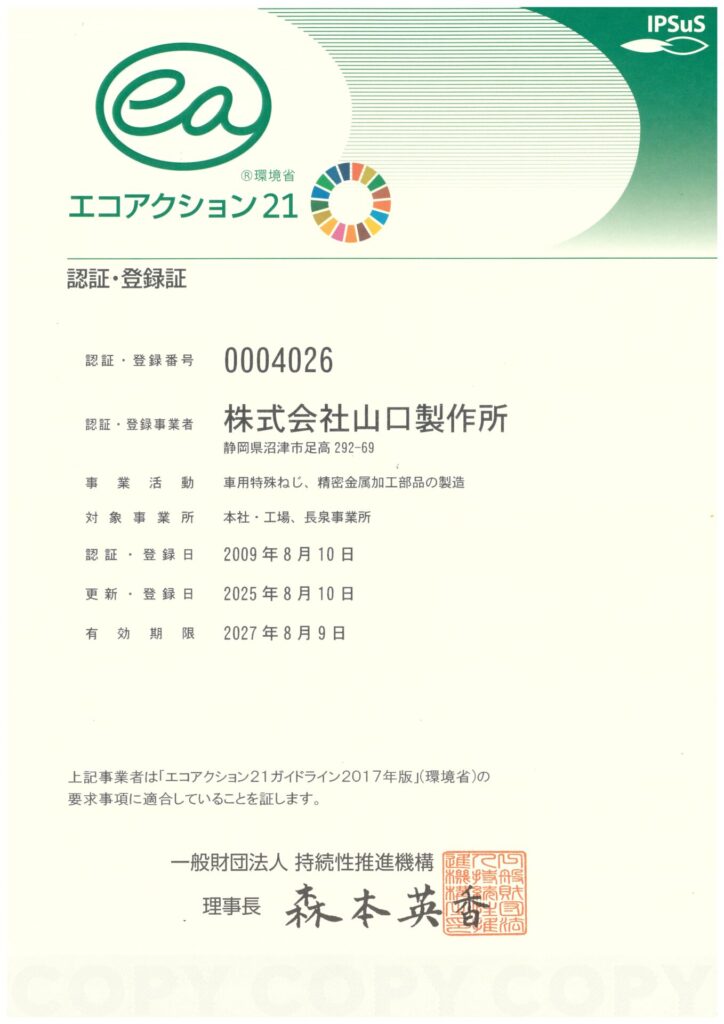 2009年8月10日に、エコアクション21の認証・登録を取得しました。